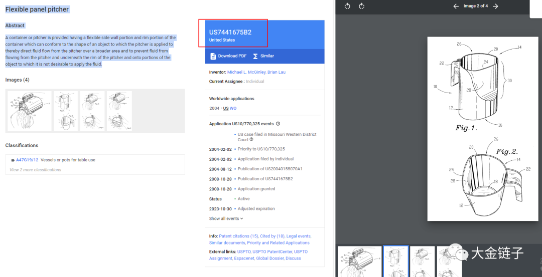 违规原因:外观设计专利侵权,专利号:US7441675B2