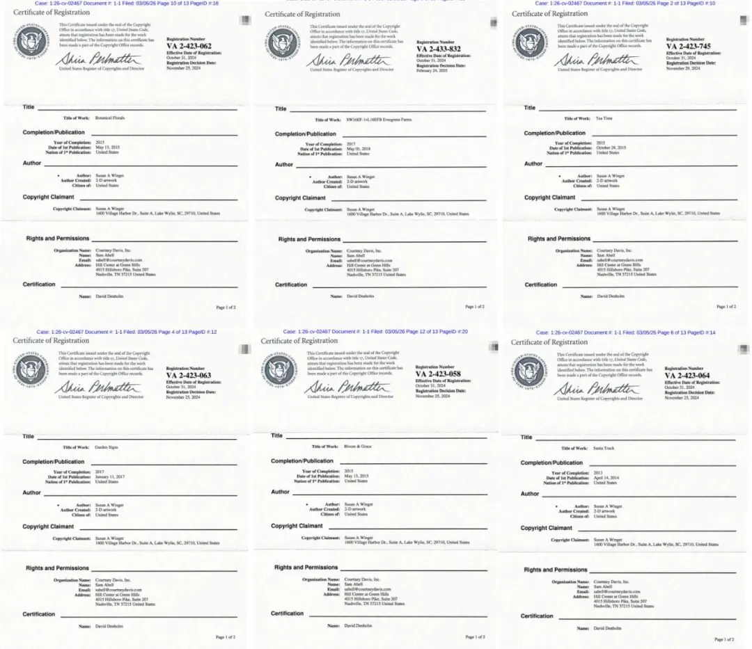 【26-cv-02467】Susan A. Winget版权维权第5波!跨境卖家速看避雷!