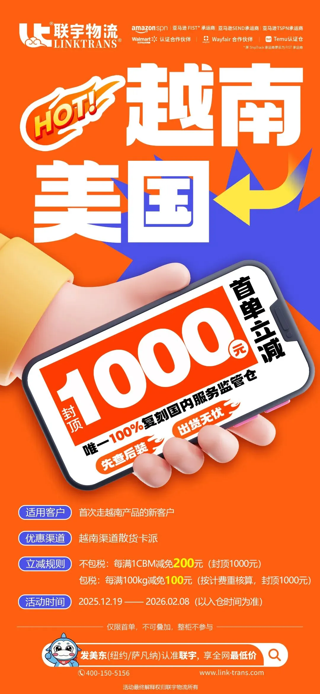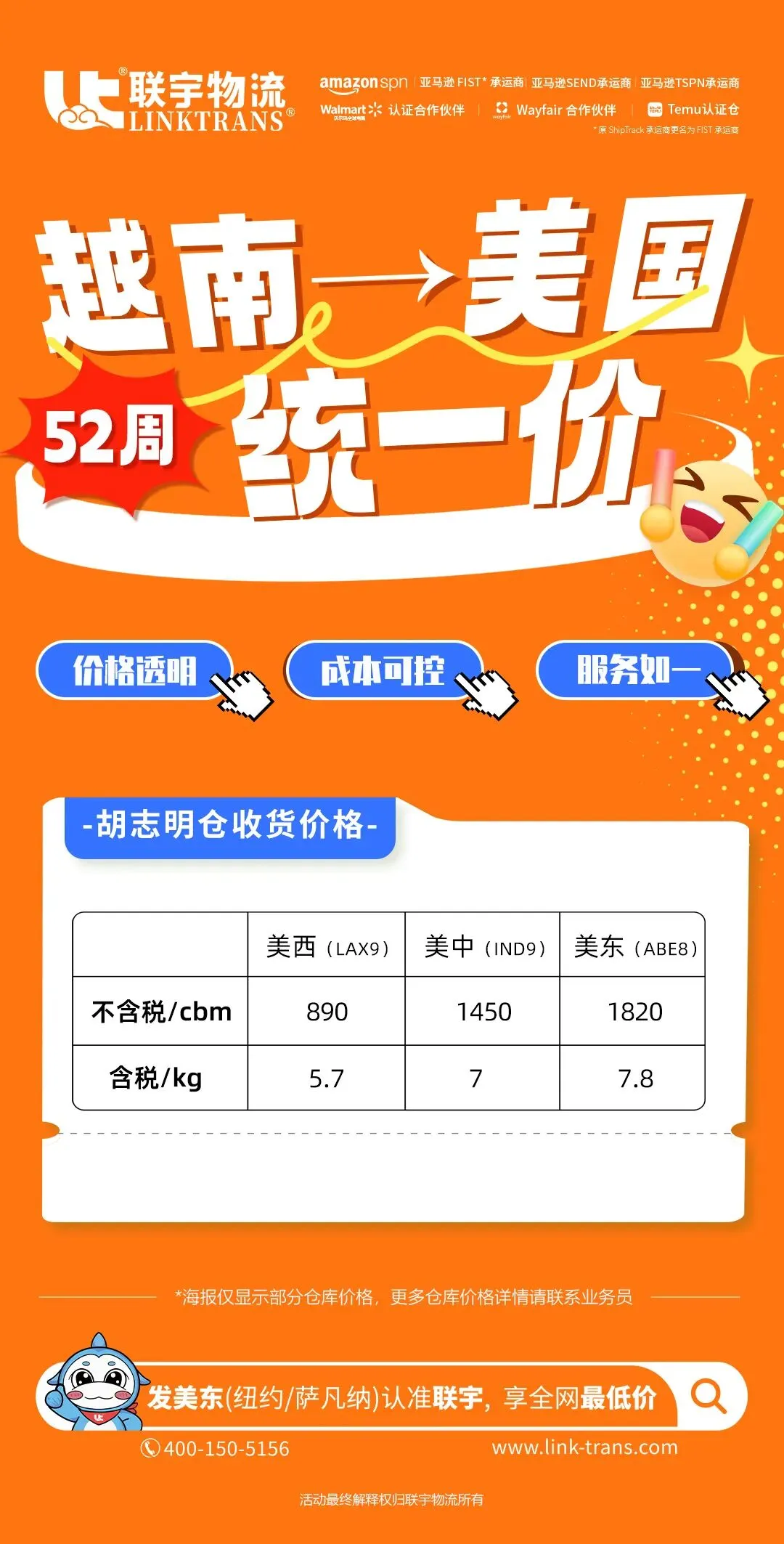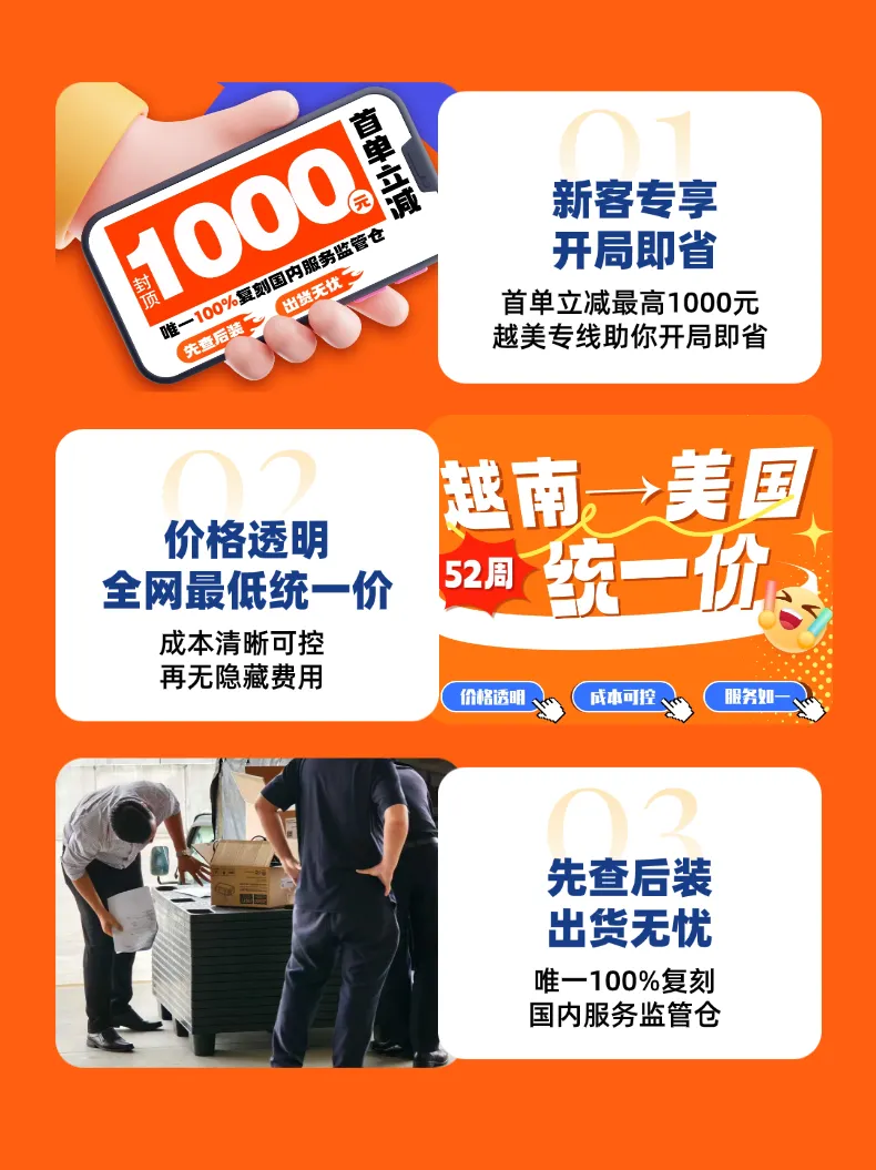越南跨境蓝海已至,联宇以本地化布局、全链服务与专属优惠,为你打通物流壁垒,助力生意长虹!立即咨询客户经理,锁定优惠,抢占先机!