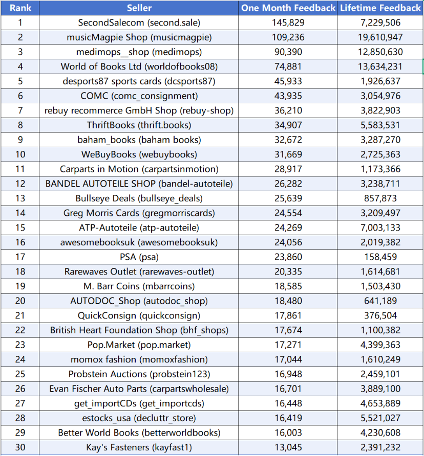 Amazon 、eBayTOP100 卖家 7月最新名单发布!