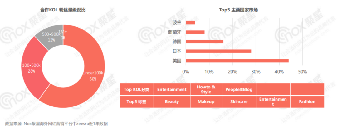 100K 以下是其主要合作网红量级,日本成为近期主力市场