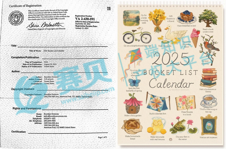 【25-cv-1909】Brooklyn Swenson日历TRO版权维权,跨境卖家请注意避雷!未开始冻结账户资金!