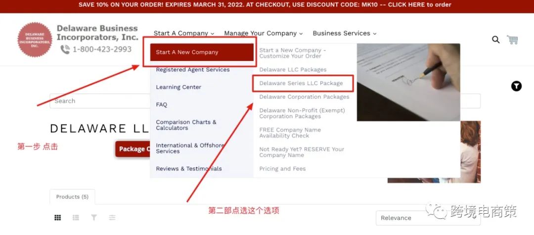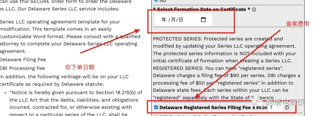 第一步登进网站之后 点击 start a company 之后右边的框出现Delaware series package