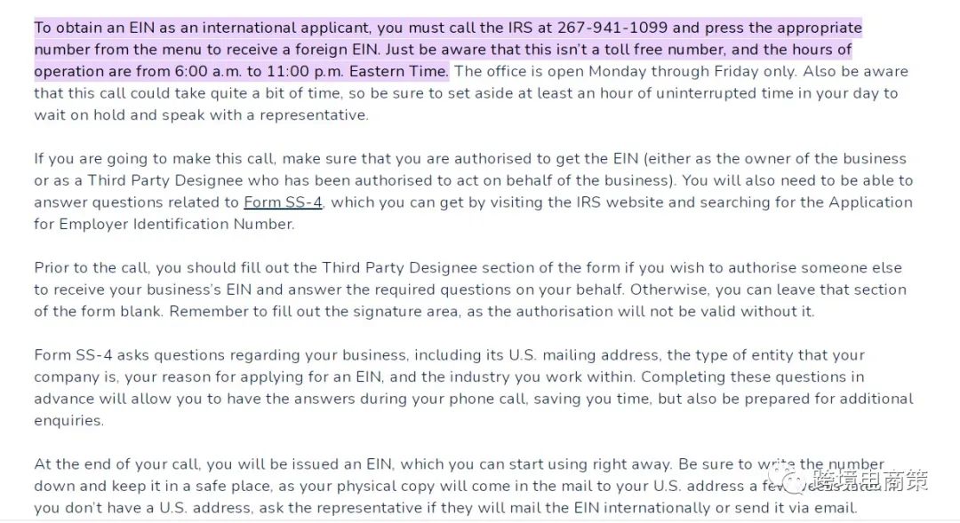 注册公司的步骤完成之后,你需要EIN 号 ,美国国家税务局 通过这个EIN号码识别你的公司主体信息以及相关的信息,也是相当于你的税务代码,对于美国人来说申请非常简单,但是对于不在美国的外国人来说稍微那么一点点复杂 。
