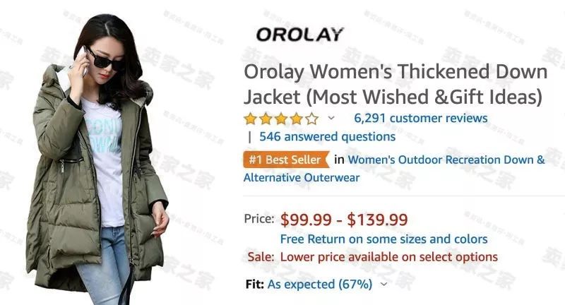 此外,据卖家之家了解,这款产品是来自中国品牌Orolay的一件羽绒服,已经卖了好几年了,如今被国外买家称为 “The Amazon Coat(亚马逊外套)” ,也算是做出了自己的口碑。
