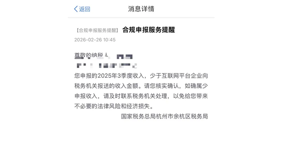 个税APP税务提醒:您2025年3季度的平台收入,为什么比自己申报的多?