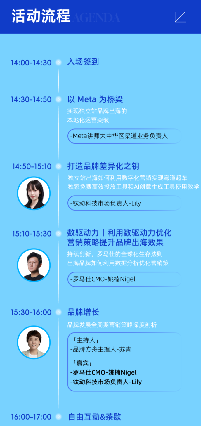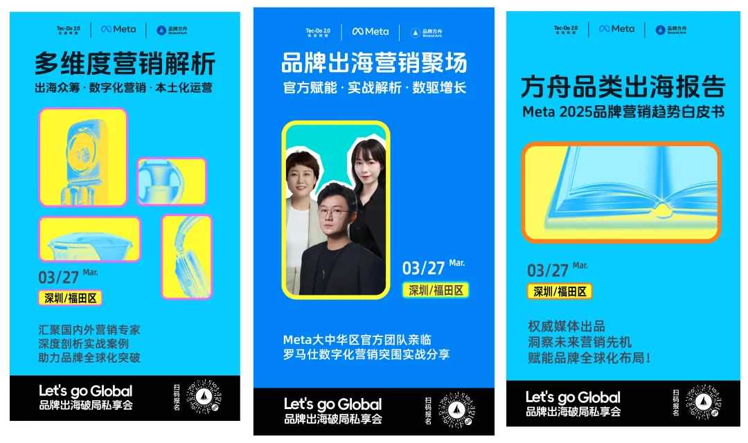 在流量红利逐渐消退、竞争壁垒愈发坚固的电商行业中,众多卖家面临着平台流量成本飙升、市场竞争激烈等诸多困境。随着“出海去”逐渐成为业内共识,玩家们对渠道的布局也愈发谨慎。虽然跨境电商平台能够提供大量的线上流量和曝光,但对于想要做品牌的企业来说,却面临着无法直接接触用户、溢价能力不足、品牌形象难以塑造等多重壁垒。而独立站作为私域流量的蓄水池,具备打造品牌形象、讲述品牌故事的天然优势,对于想要建立全球化品牌的企业来说,是一个十分优质的渠道。数据显示,2024年我国有超过12万的跨境电商主体运营着超20万的独立站,不难看出,独立站已经成为跨境卖家实现增长的新选择。然而,随着大量玩家的涌入,品牌如何在独立站这片新蓝海中脱颖而出,避免同质化竞争?为了帮助企业解答这些难题,品牌方舟、钛动科技联合Meta将于3月27日共同举办一场Let's go Global品牌出海破局私享会,这场活动汇聚行业大咖,将深度剖析最新市场趋势、实战经验与前沿技术应用,为参会品牌开启营销新篇,探索品牌增长新路径。本次私享会的亮点纷呈,精彩不容错过,我们将深入探讨多维度营销解析,包括出海众筹、数字化营销和本土化运营。活动将汇聚营销专家,深度剖析实战案例,助力品牌全球化突破。行业大咖将亲临现场,分享实战经验,提供精准策略。