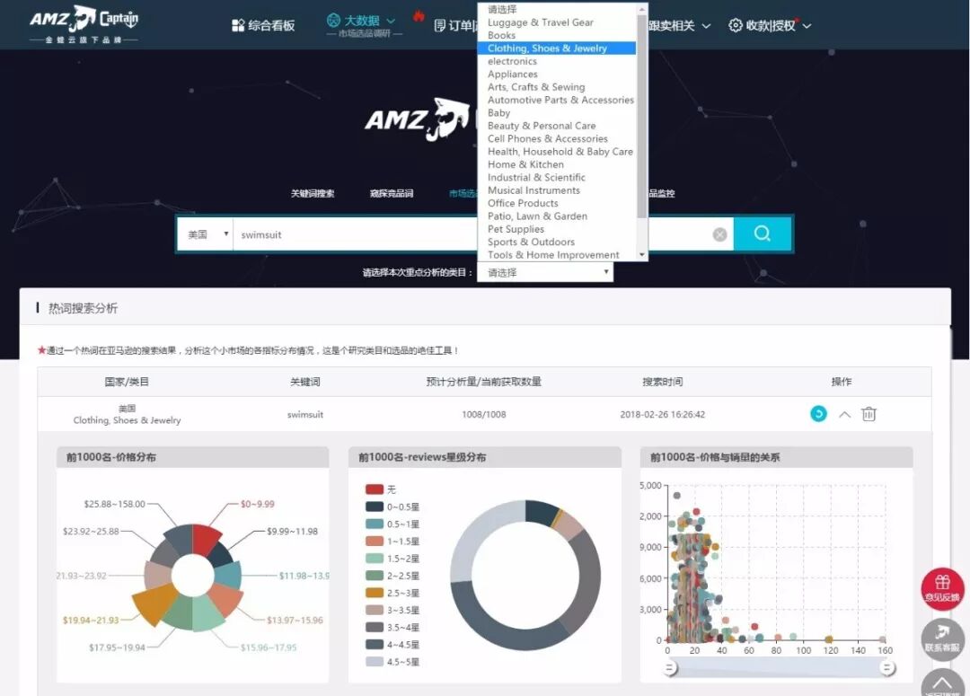 通过船长的市场选品调研查询美国站“Clothing, Shoes & Jewelry”类目下的关键词“swimsuit”得到以下数据,用以研究、分析泳装这个类目,协助选品和开发。如有需要本次分析数据参考的粉丝可留言留下邮箱,稍后船长会统一发出(数据查询时间为2018-02-26 16:26:42)。