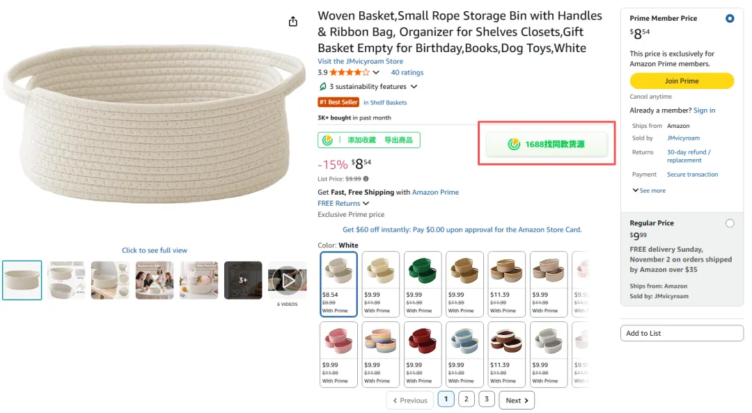 别急。我还是老办法,在亚马逊找个看起来不错的款式截图,然后把图丢进“店雷达”的图搜功能里跑一圈。结果一出来,画风完全变了。另外下载店雷达插件,点击商品链接的1688找同款会更加便捷。
