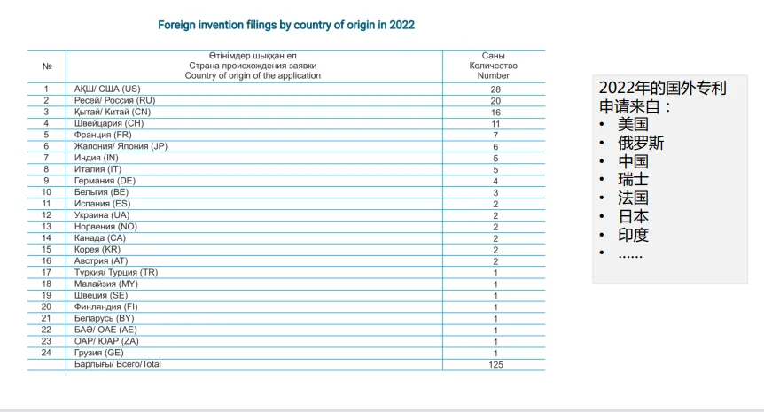 中亚国家专利量
