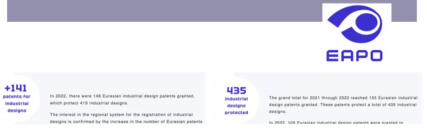 2019年9月9日,在努尔苏丹举行的外交会议上通过了《欧亚专利公约工业品外观设计保护议定书》。议定书最先于2021年3月17日对吉尔吉斯斯坦、阿塞拜疆和亚美尼亚生效,之后相继对俄罗斯(2021年4月11日)、哈萨克斯坦(2021年4月12日)、塔吉克斯坦(2021年11月30日)和白俄罗斯(2022年4月19日)生效。