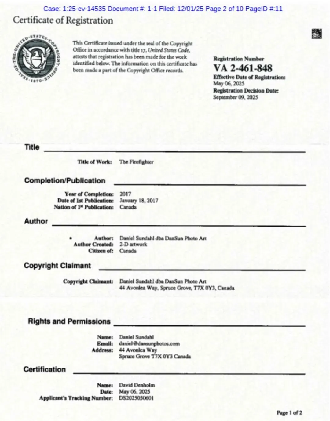 【25-cv-14535】消防员救援主题作品维权!跨境卖家速看避雷!