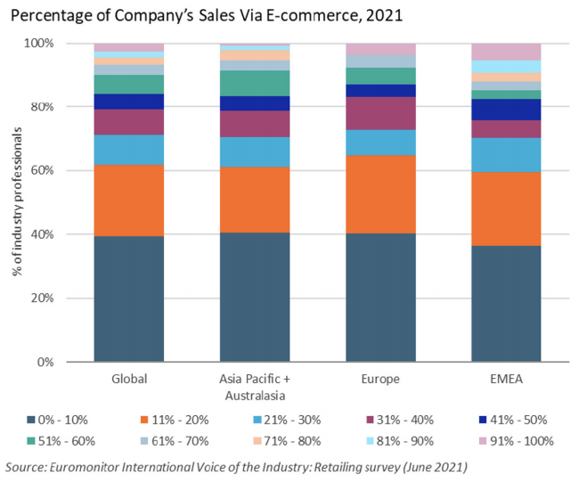 不过,对于未来供需市场的变化,行业的一些专业人士却对此持有较为乐观的看法,因为今年消费者已经逐渐开始回到疫情前的生活方式。欧睿国际预测,2021至2026年的复合年增长率为6%。在比较零售业各渠道的表现时,这些专业人士期待着新的电子购物渠道,比如直接触达消费者的在线市场,能够带来更为强劲的增长。