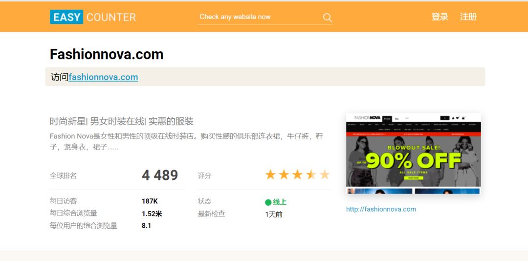 比如我们输入:fashionnova.com
