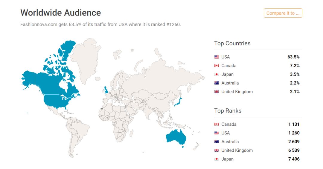 Support.fashionnova.com是Fashionnova.com最受欢迎的子域名,占总流量的0.74%。