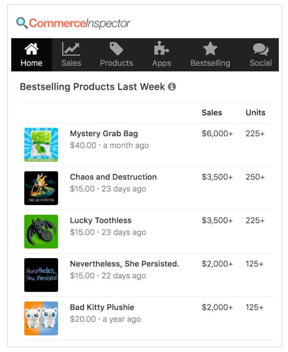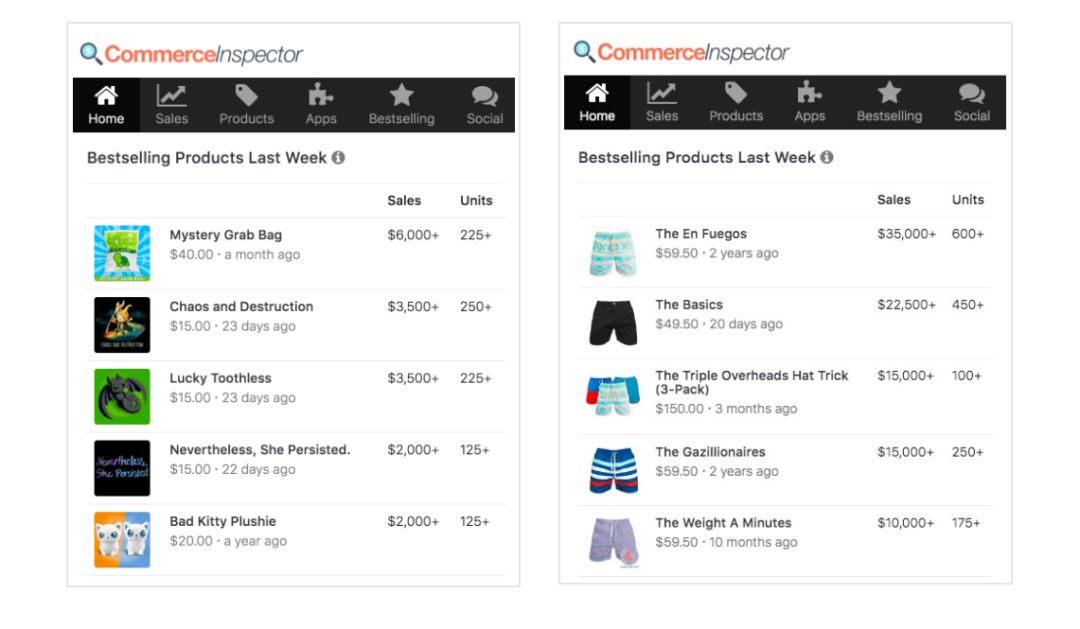 Store Intelligence是Commerce Inspector的一个强大功能,可以显示最畅销的产品,这些产品是按需销售的。