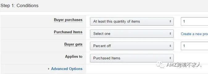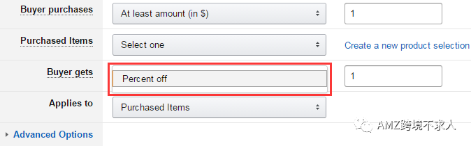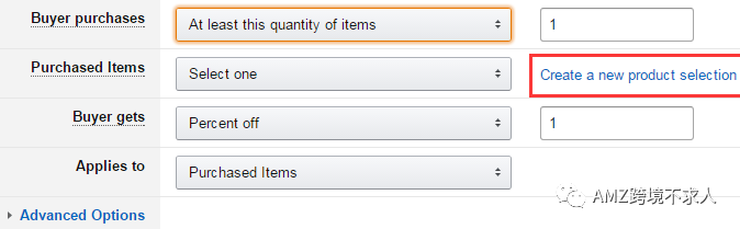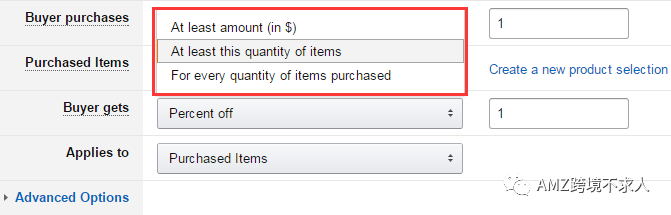 这里主要需要填写 Buyer purchases、Purchased Items、Buyer gets、Applies to 以及 Advanced Options 五项内容。下面依次来看如何填写。