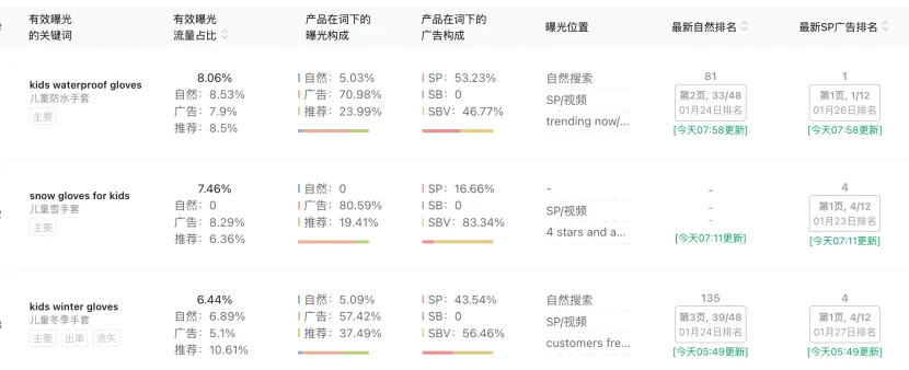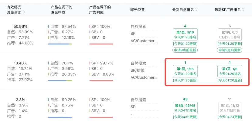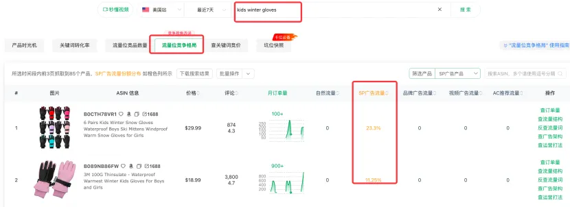 如果前两名的SP流量份额加起来超过60%-80%,说明这个词的流量被巨头高度垄断。对于这种垄断词,新手卖家应果断放弃,转而去挖掘竞争相对分散、且自身产品有比较优势的长尾词。