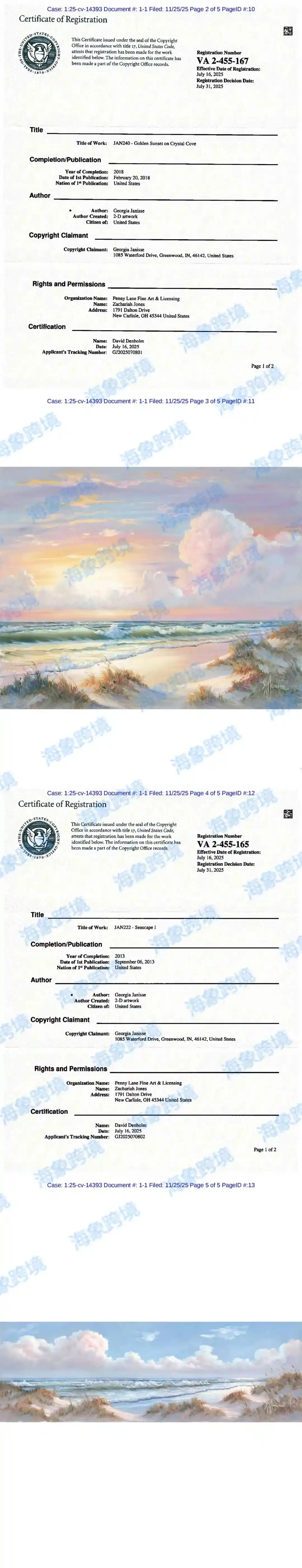 Keith代理DJ,涂鸦版权画25-cv-14134和天空画25-cv-14393