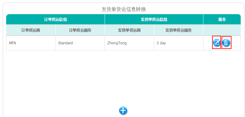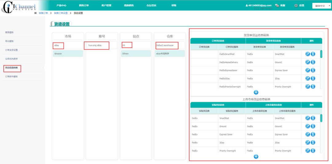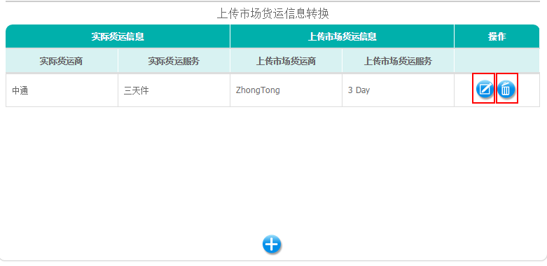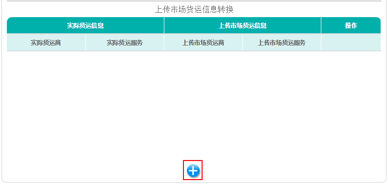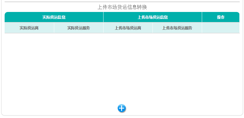 上传市场货运信息转换界面分为实际货运信息和上传市场货运信息。实际货运商为仓库实际使用的货运商,上传市场货运商则为上传到市场的实际货运商的英文名称。