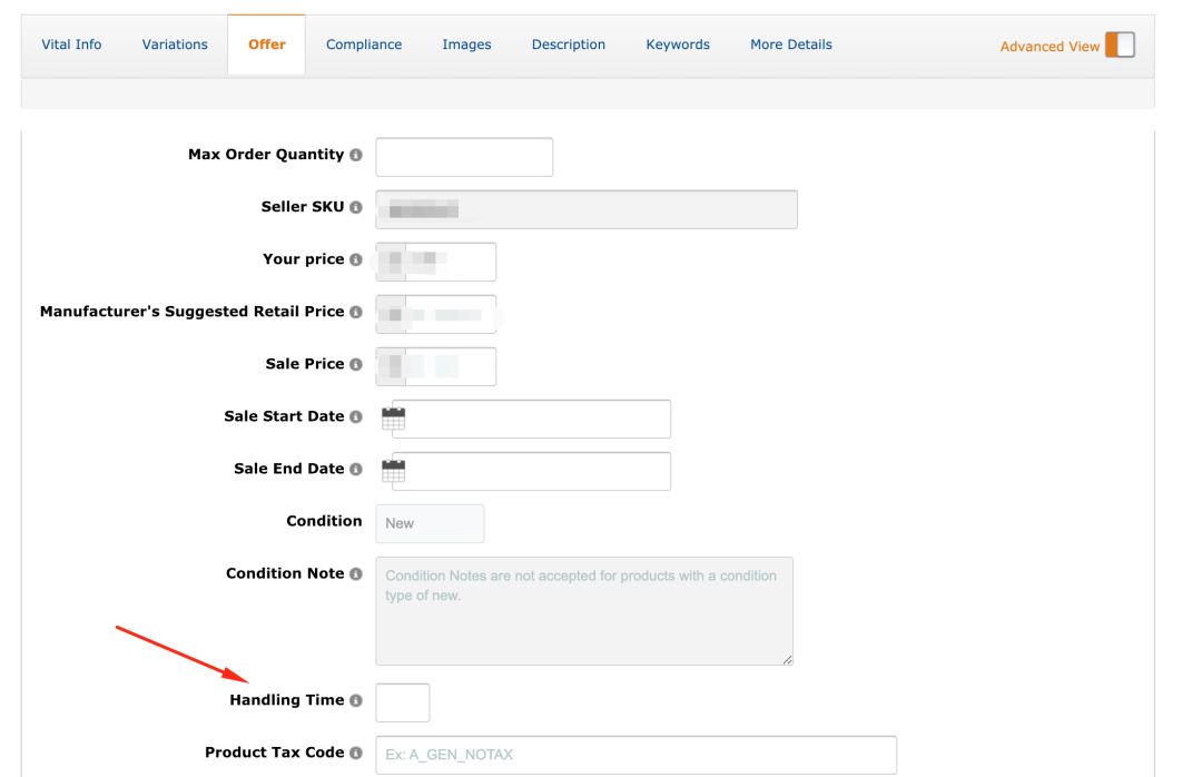 亚马逊的默认发货时间是两天,但是自配送卖家可以根据需求自行设置:进入产品的编辑页面修改Handling Time: Inventory – Manage Inventory -Edit - Handling Time: 填写您需要的配送准备时间。也可以批量修改,在批量上传的EXCEL表格模板里,修改Handling Time这一栏。