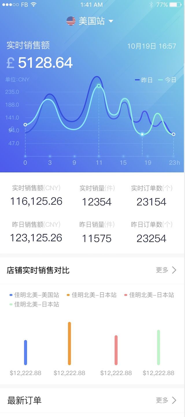 进入app首页就能一眼囊括今日的实时销量和最新订单,一切变数尽在掌控当中,方便卖家第一时间对异常状况反应并处理。