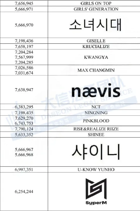 此案为商标维权,关键词:aespa、nct、SHINEE等公司旗下组合名称,产品范围涵盖CD、服饰、配饰等领域,侵权风险极高!以下是维权具体信息,未经授权不得擅自使用,跨境卖家尽快检索下架,否则会有TRO侵权风险!