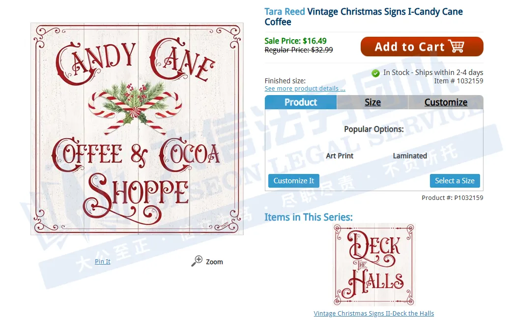 此案版权维权,共涉及4张版权画,以下是维权具体信息,未经授权不得擅自使用,跨境卖家尽快检索下架,否则会有TRO侵权风险!