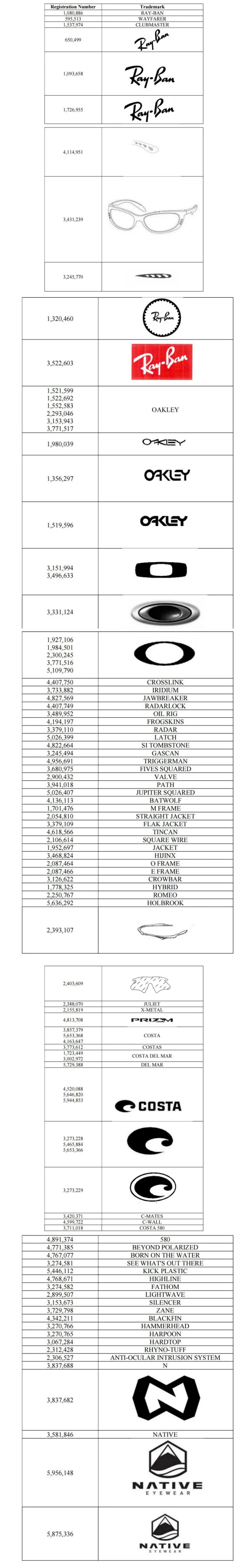 这不是该集团第一次集中维权,也不会是最后一次。从用户提供的商标截图可以看出,Ray-Ban与Oakley名下持有海量注册商标,覆盖:
