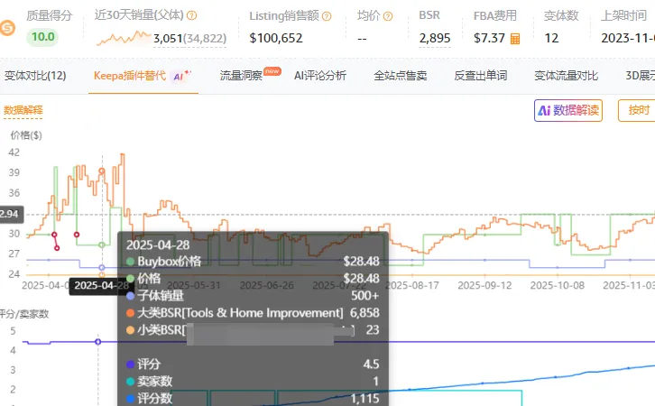 主力A变体:专享价28.98,利润率只有17%左右,B变体:售价32.99,相对主卖A变体来说,表现要好些。