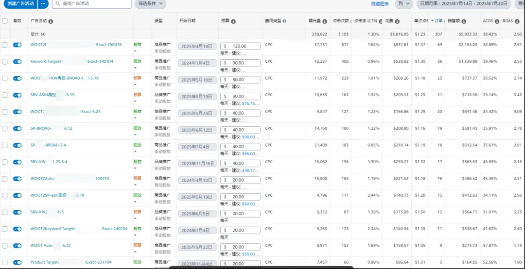 这波操作下来,广告单占比到50%左右。acos在38%左右。