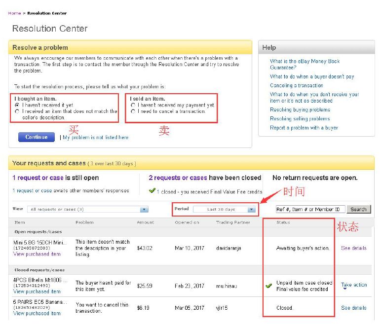 eBay的纠纷种类共分为:物品未收到(INR)和物品与描述严重不符(SNAD)。