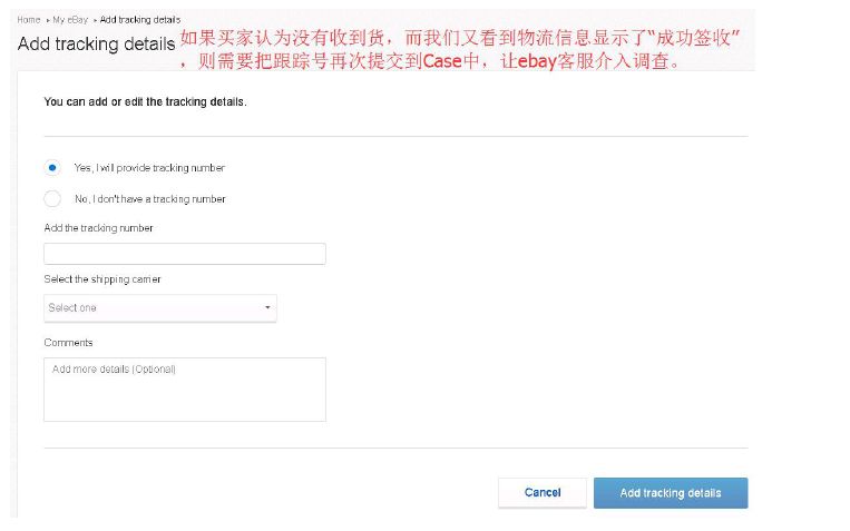 2、如果卖家确认物品巳寄达,但买家又声称物品未收到,那么可以上传跟踪号,让eBay 客服出面仲裁。(此方案是针对骗货买家)