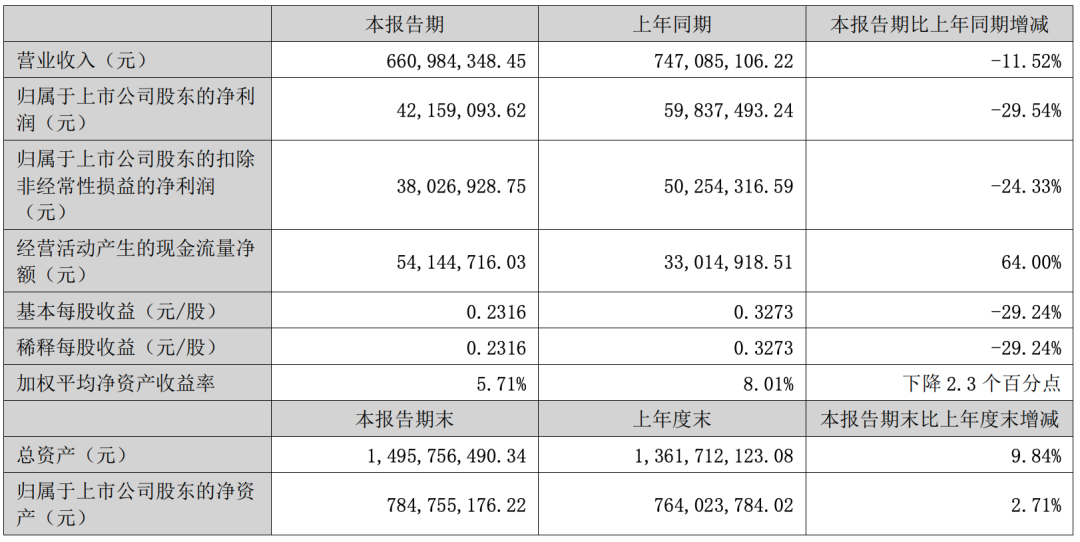 2022年上半年,创源股份实现营业收为6.61亿元,同比下降11.52%,实现归属于上市公司股东的扣除非经常性损益后的净利润为3803万元,同比下降24.33%。