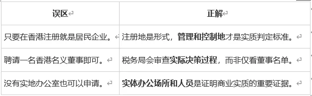 香港税务局采用 “中央管理与控制” 实质重于形式的原则来判定居民企业身份。具体体现在: