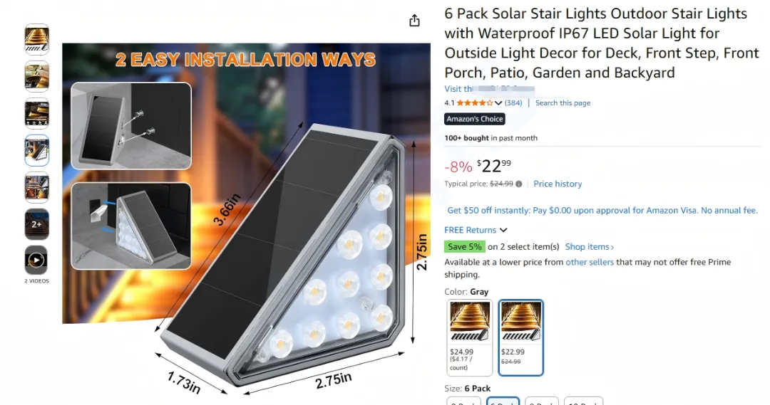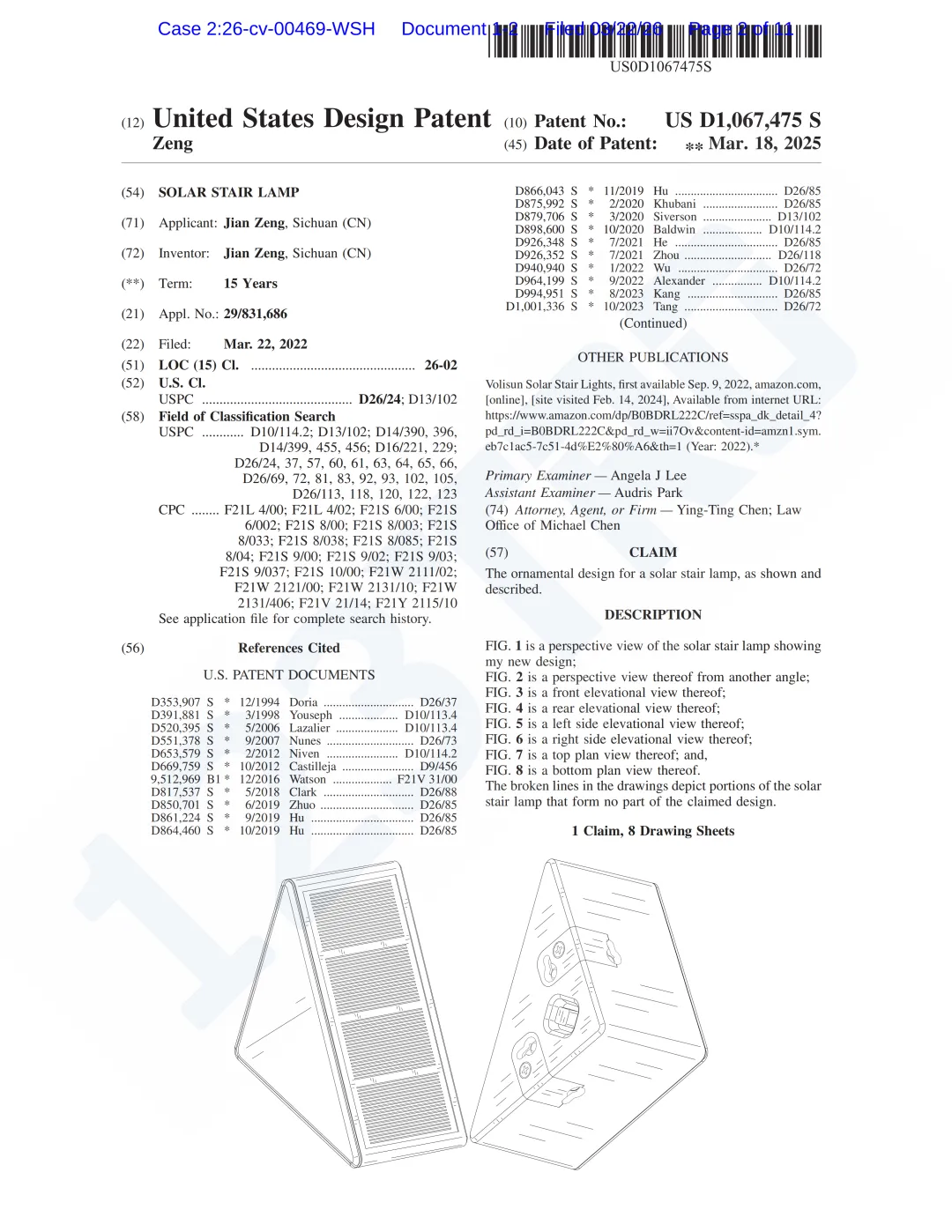 这款太阳能楼梯灯已有外观专利,还在宾州维权!