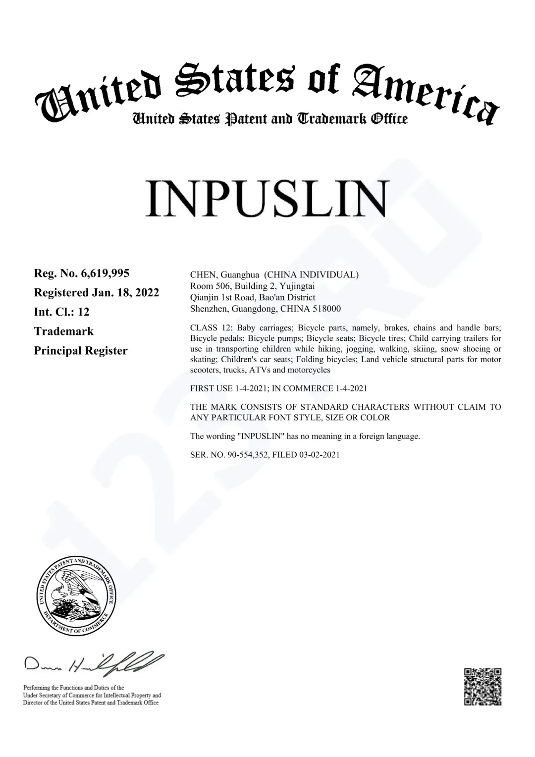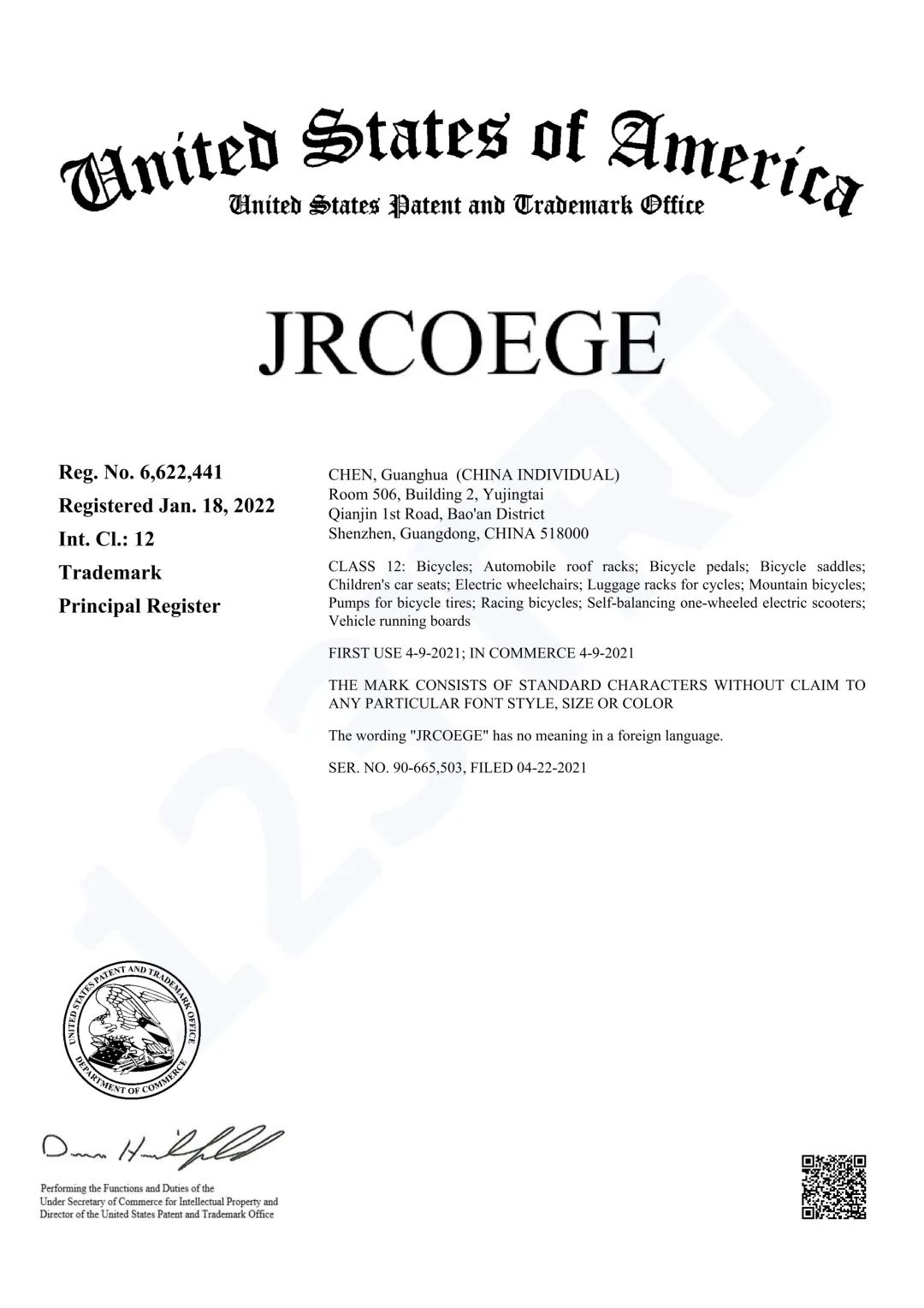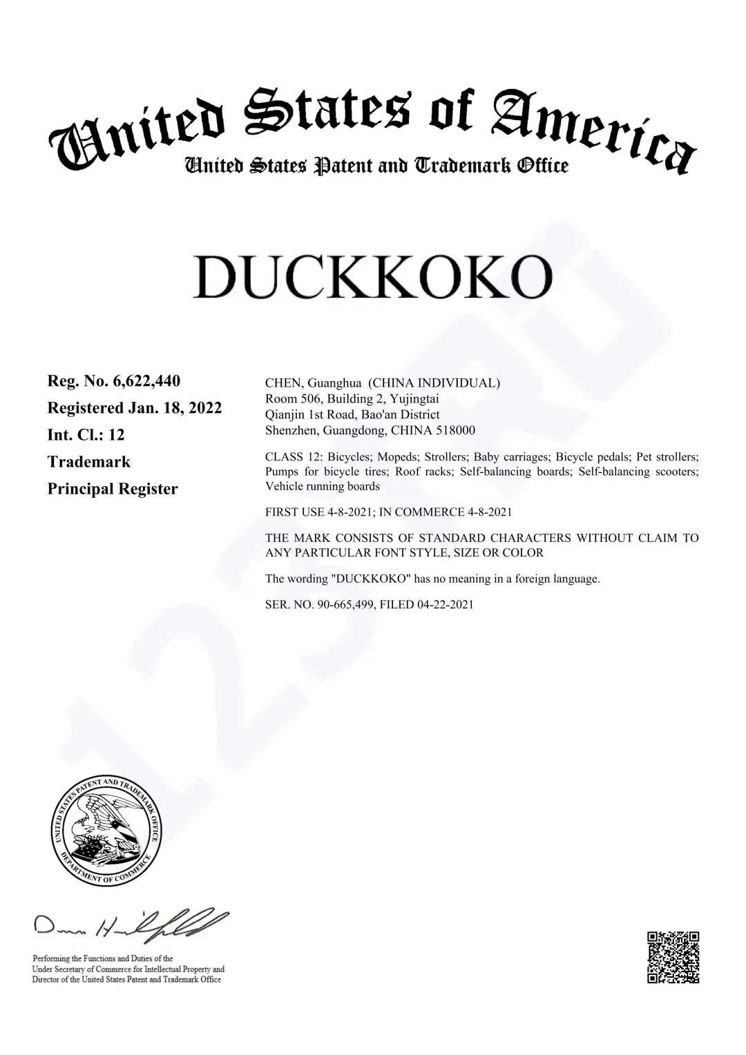 小编检索后发现其名下有3条名为“INPUSLIN”、“DUCKKOKO”、“JRCOEGE”的商标,其产品服务范围和自行车脚踏板有关,大家可以参考一下