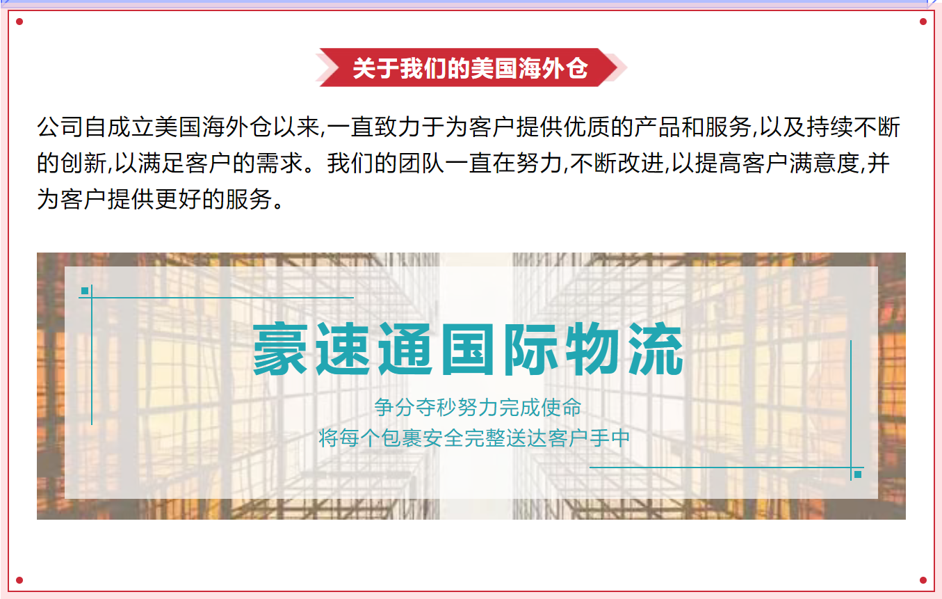 豪速通作为物流跨境电商的先驱者和领军企业,豪速通深耕国际物流行业16年,并拥有6年的海外仓运营经验,在多仓自营基础上,致力于服务跨境卖家,提供公共海外仓创新综合服务,主要包括头程海运、一件代发、FBA转运、海外仓储、售后托管、创意视频拍摄等一站式跨境物流务。