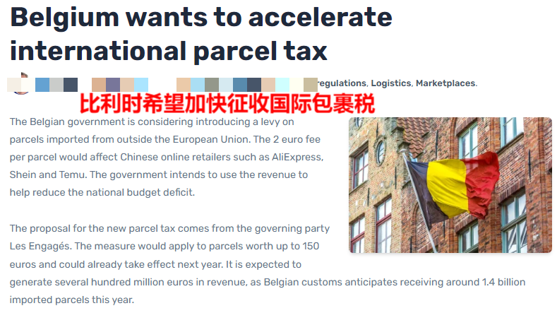该措施主要影响AliExpress、Temu、Shein等中国跨境电商平台,预计最快明年生效。比利时海关估算,全国每年约有14亿件进口包裹,新税将带来数亿欧元财政收入。