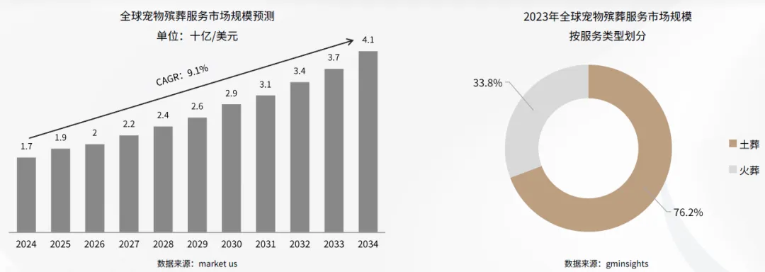 转型背后是全球宠物殡葬市场的爆发:数据显示,全球宠物殡葬服务市场规模预计在2030年达到37.5亿美元,年复合增长率超过11%,增速比人类殡葬市场还高。