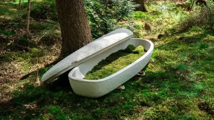 蘑菇棺材内配备苔藓床和苔藓枕,以加速分解