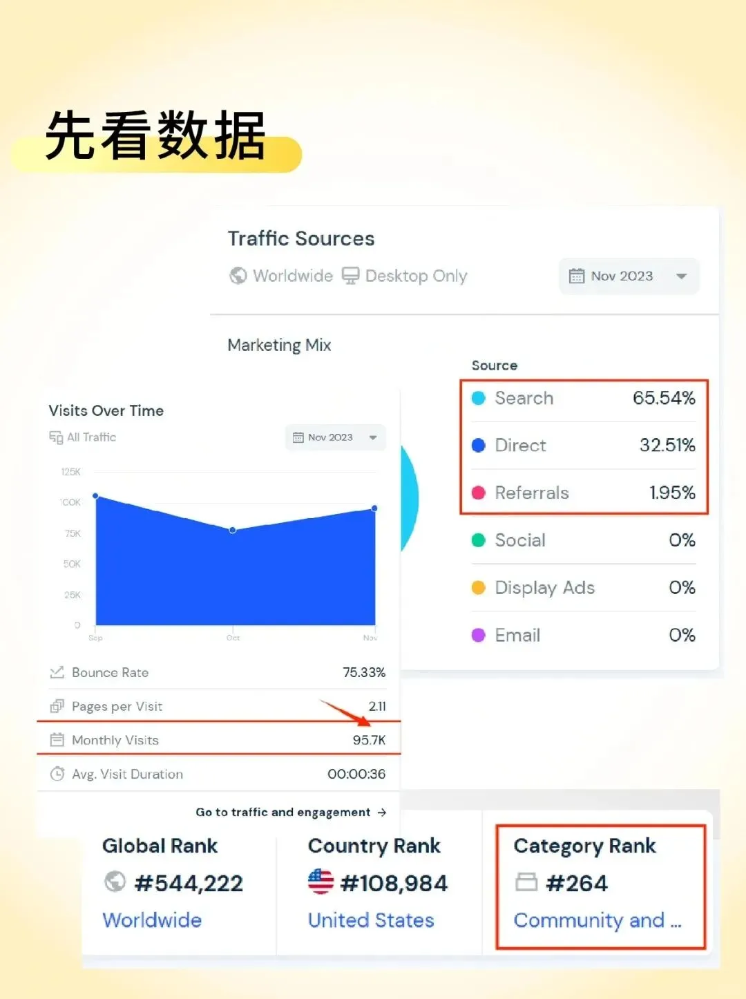 这种协同效应直接转化为惊人的流量掌控力——其独立站月访问量高达95万,其中65.54%来自自然搜索,32.51%为直接输入访问,近98%的自主流量占比,足以证明Titan Casket品牌知名度之高。