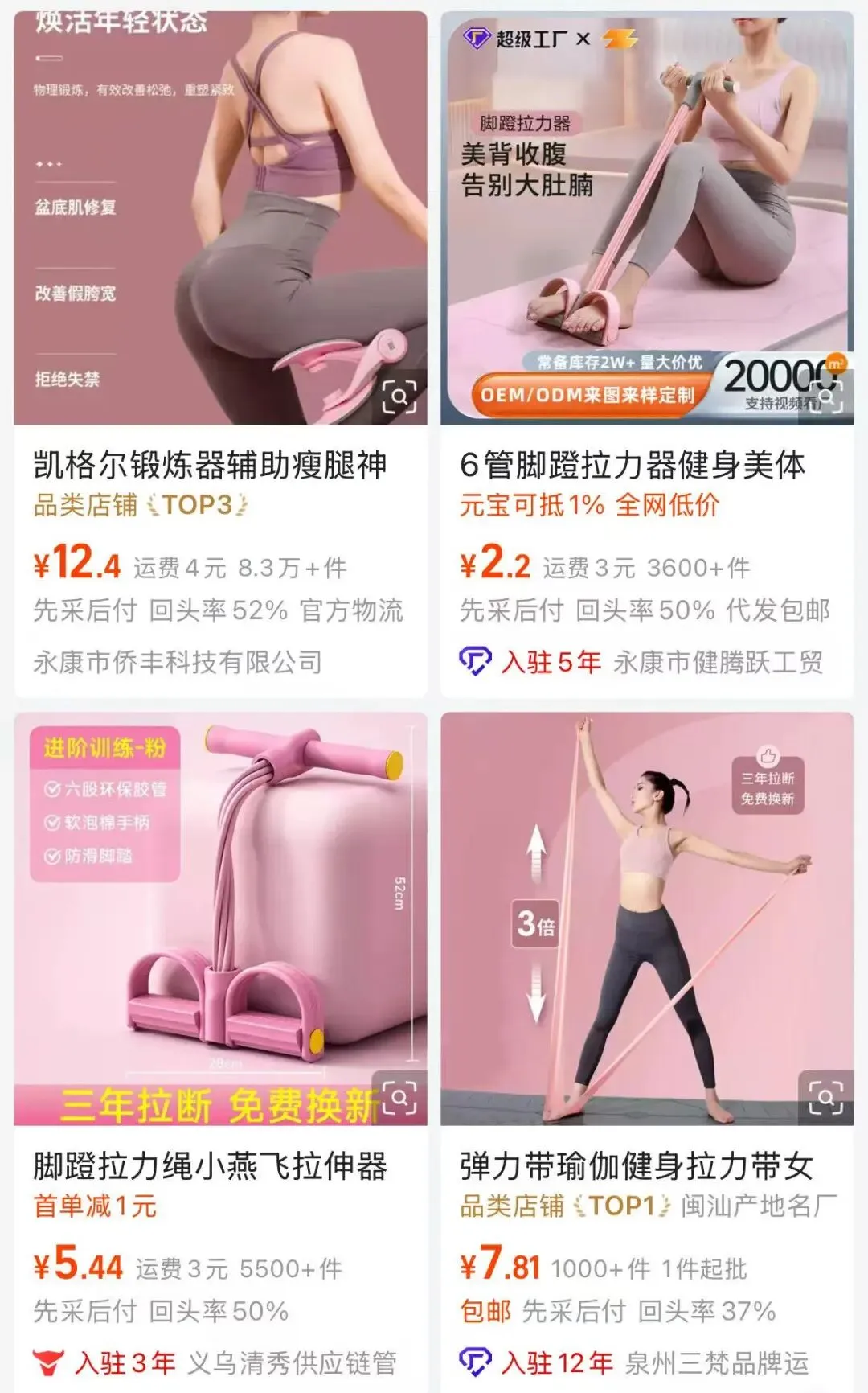 这款脚踏拉力器,在1688,同款产品的成本价大概在5元左右。