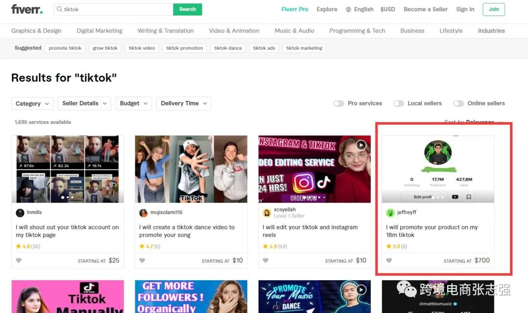 此外还能去兼职平台,去帮别人代发视频挣点广告费,帮人代发一次收费10美金,当然粉丝足够多的话如图框出700美金一次。