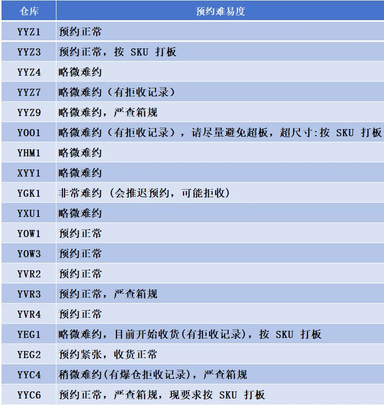 旺季期间,部分仓库因订单激增出现预约难、入库慢等问题,且拒收记录频发。关键仓点状态如下:
