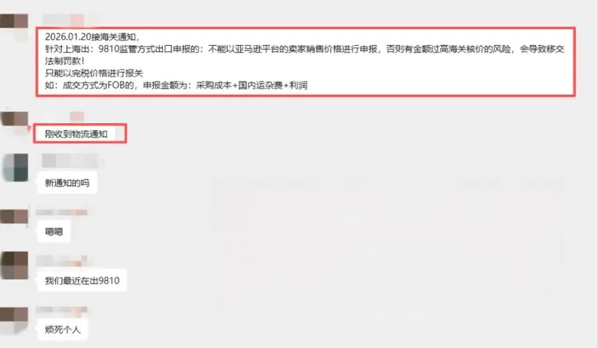 但现在海关已经明确禁止:以亚马逊平台卖家销售价格作为9810监管方式的出口申报价格。