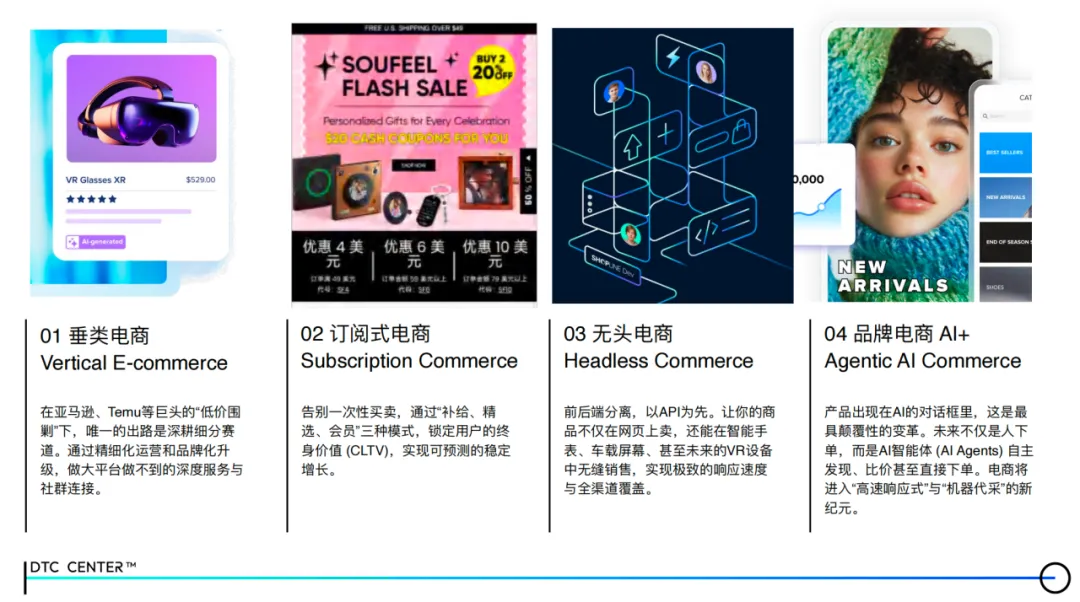 未来成功的电商模式,将是垂类的专业深度、订阅的用户运营、无头的技术敏捷与 AI 的智能交互之间深度融合的产物。企业无需拘泥于单一模式,而应基于自身品类与用户特征,灵活配置、组合创新,构建可持续的差异化增长路径。