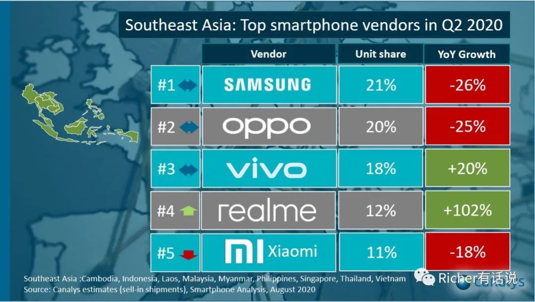 根据Canalys的数据,中国手机在东南亚占据绝对优势