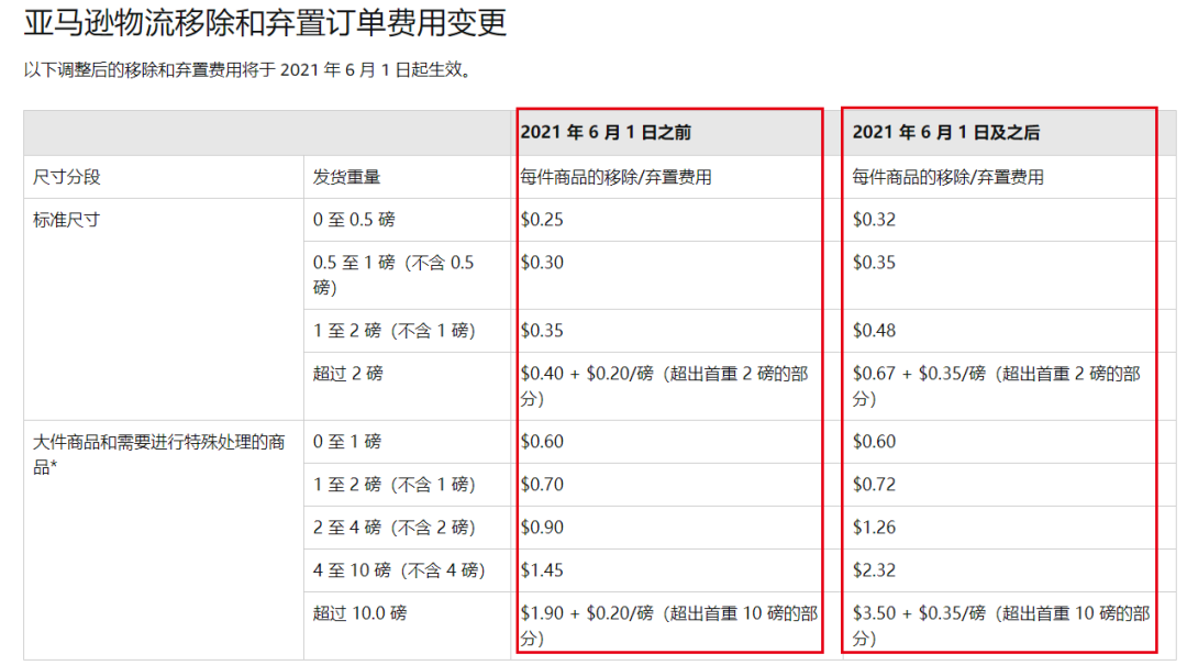 美国亚马逊物流配送费用&移除弃置费用变更需知