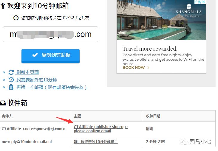 3、去你的10分钟邮箱里,打开邮件,复制下链接,然后复制到浏览器里打开就行了。